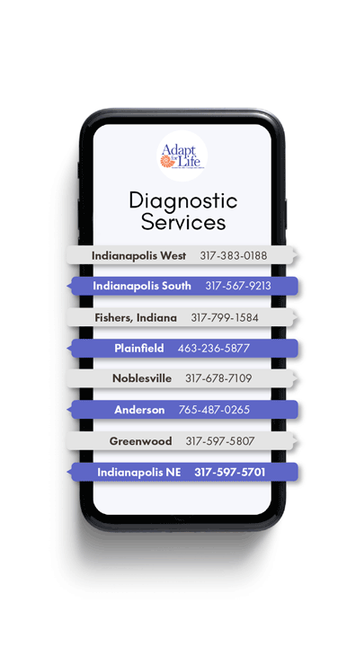 Adapt For Life provides Autism Diagnostic Services for families in the Indianapolis area. If you’re seeking assessment and support for your child, our clinics in Indianapolis West, Indianapolis South, Fishers, Plainfield, Noblesville, Anderson, Greenwood, and Indianapolis NE, Indiana are here to help.